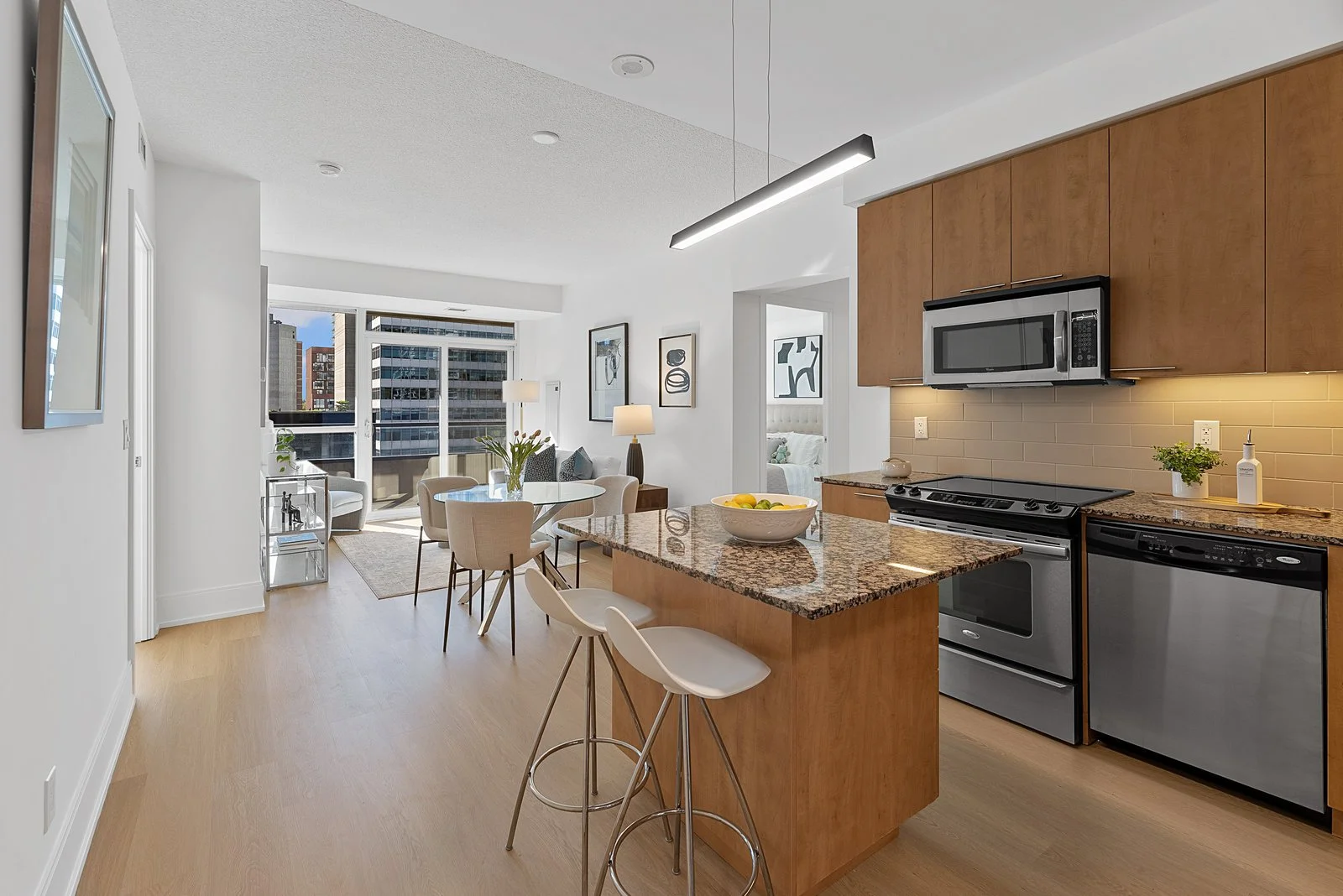 Tridel-built "The Republic II" at Yonge & Eglinton. Fabulous split-bedroom layout with bright, west-facing unobstructed views. 2 bedroom, 2 bathrooms, 9' ceilings, and an open-concept kitchen with centre island overlooking the sunlit dining and living area with walk-out to balcony. Spacious primary bedroom with walk-in closet and ensuite. Large second bedroom across from a 4-piece washroom. Move-in ready with new flooring and fresh paint. Spa-like amenities include indoor pool, sauna, BBQs on the common terrace, 24-hour concierge, guest suites, gym, and party room. Steps to TTC (Eglinton Subway & future LRT), shopping, restaurants, bars, movie theatre, and multiple parks, everything at your front door.